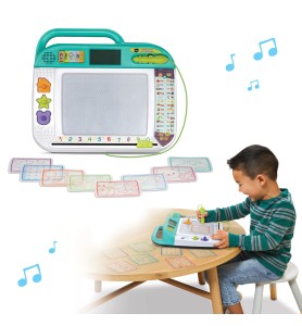 Lleno de material de escritura, este tablero fácil de borrar muestra a los niños cómo dibujar letras, números y objetos paso a paso