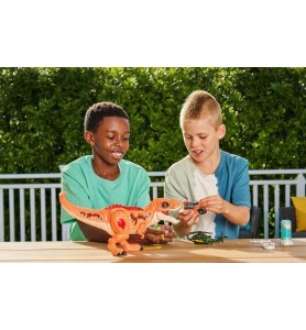 ¡Descubre el cautivador Robo Alive Dino Escape! Regala a tus pequeños aventureros una experiencia prehistórica inolvidable con el extraordinario Robo Alive Dino Escape. Este asombroso playset de jaula los transportará a un mundo de dinosaurios, donde la imaginación y la diversión se fusionan. Un dinosaurio con luces y sonidos que cautivan El protagonista de Robo Alive Dino Escape es su impresionante dinosaurio, que se mueve como si fuera real, ilumina la escena con luces brillantes y produce sonidos impactantes. Tus hijos quedarán fascinados viendo cómo esta magnífica criatura cobra vida ante sus ojos. Tarro de slime para una experiencia sensorial Enriquece la aventura de juego con el tarro de slime incluido. Este slime vibrante y táctil no solo es divertido de manipular, sino que también despierta la creatividad y estimula la exploración sensorial. Accesorios para un juego sin fin El playset Robo Alive Dino Escape incluye una amplia gama de accesorios que despertarán la imaginación de tus pequeños. Desde una jaula hasta un árbol y rocas, este juego ofrece infinitas posibilidades para aventuras prehistóricas. Dimensiones ideales para horas de diversión Con sus dimensiones generosas de 30 x 40 cm, Robo Alive Dino Escape ofrece un amplio espacio para que los niños jueguen y exploren.