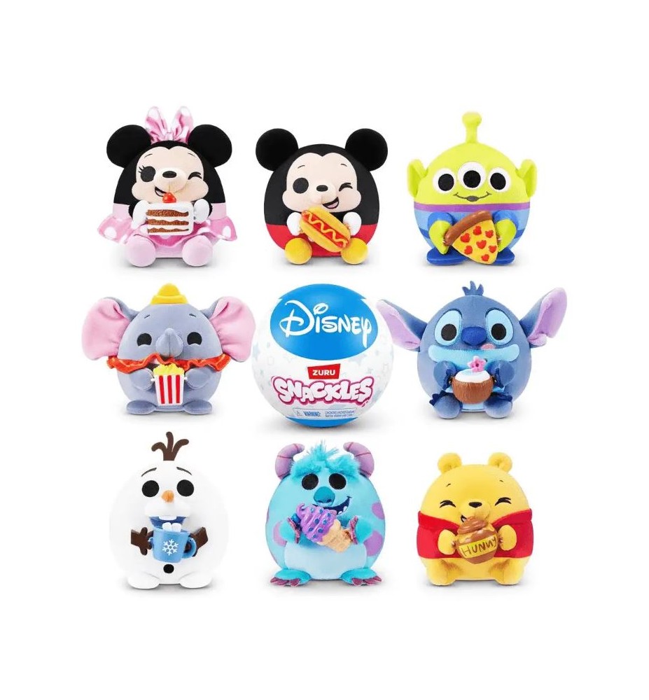 Lleva la magia de Disney a tu colección con los Snackles. Cada cápsula incluye un peluche blandito y lleno de encanto que sorprenderá a peques y coleccionistas.