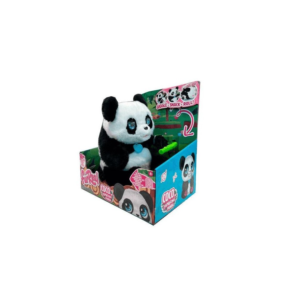 Conoce a Coco, un panda interactivo ultrasuave que disfruta rodando por el suelo, riendo, haciendo volteos y reaccionando al tacto. Tiene más de 60 sonidos y movimientos que se activan al acariciar sus patas, cabeza o al usar su biberón o bambú de juguete.
