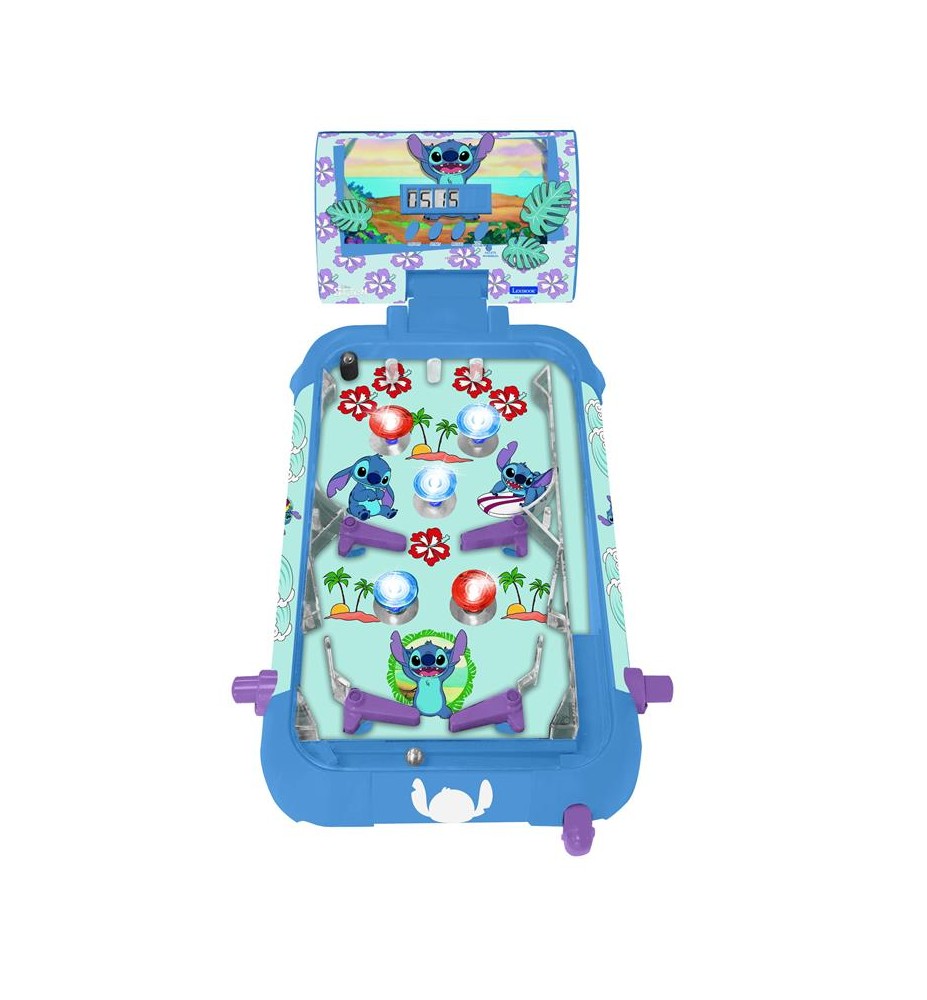 ¡Un pinball de mesa electrónico con un magnífico diseño de Stitch! ¡Juega solo o desafía a tus amigos!