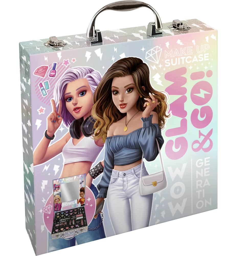 Maletín maquillaje Glam and Go. Incluye: 1 Estuche de Maquillaje con Espejo, 22 Sombras de Ojos, 1 Polvo Iluminador de Mejillas, 2 Brillos de Labios Diferentes, 2 Pintalabios, 2 Aplicadores de Sombras y 1 Delineador de Ojos.