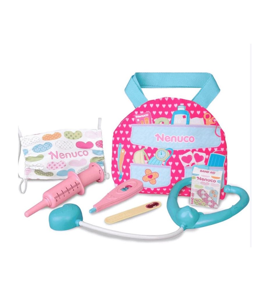 Con el nuevo set médico de Nenuco tendrás siempre todo lo que necesitas para cuidarle! Escucha su corazón con el estetoscopio, utiliza el termómetro y el palito de la garganta para comprobar si está todo bien, y después puedes ponerle la vacuna y una tirita para curarle. Y por supuesto, no olvides ponerle la mascarilla cuando termines el reconocimiento!