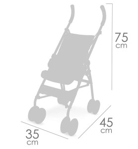 Dimensiones aproximadas de la silla de muñecas: 75 cm de alto hasta el manillar, 35 cm de ancho y 45 cm de largo.