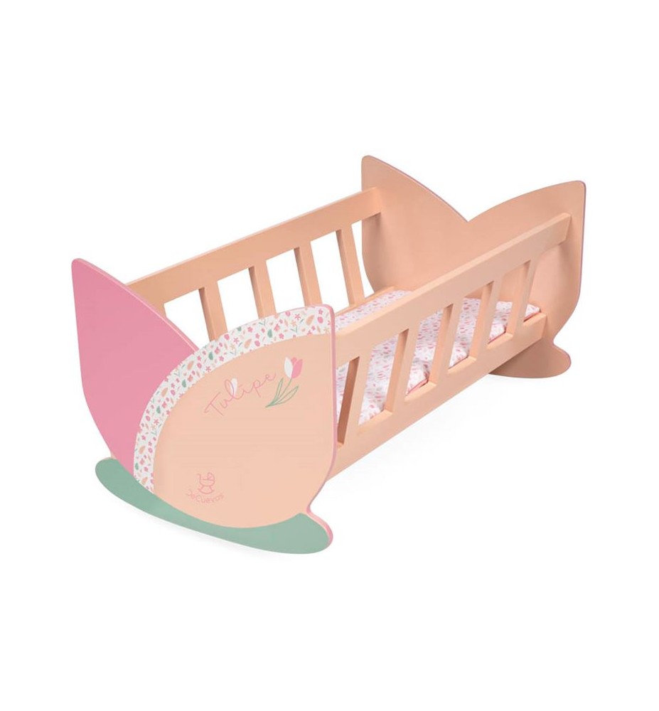 Incluye: 1 cuna de madera para muñecas serigrafiada con diseño especial de la linea Tulipe de color rosa, colchón con diseño especial de la colección y muchos más detalles de lujo.