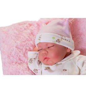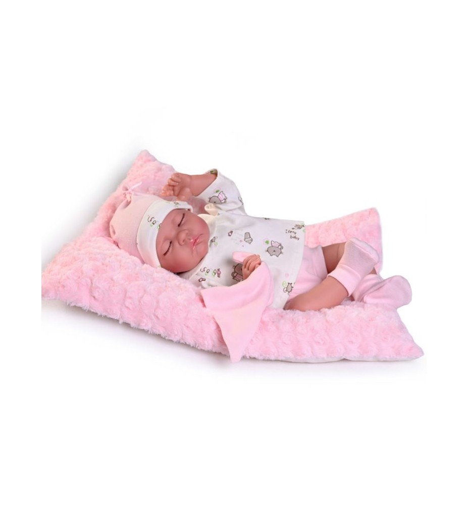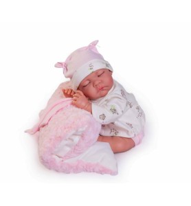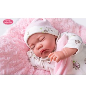 SShh!! Que Luna está durmiendo. La recién nacida Luna esta soñando tranquilamente en su suave cojin rosa. Abrazadita a su dou dou, con su conjunto y gorrito a conjunto sueña con divertidos paseos con los niños y niñas. Su cuerpo es de tela blandito para poder abrazarla suavemente y su cara y extremidades de suave vinilo. Luna mide 42 cm y pesa 800 gr. ¡Le encantará que la mimes! ¿Hay algo más adorable que un bebé? Los Recién Nacidos son la esencia de Muñecas Antonio Juan. Puede colocarse en muchas posiciones como un bebé real porque sus extremidades giran, tiene movimiento, lo que le hace tener más realismo. Un universo de dulzura creados para acompañar a los más pequeños a descubrir el mundo. Compañeros inseparables de largos días de juegos a los que no les falta detalle en sus tiernas facciones y calidad de su ropita y complementos.