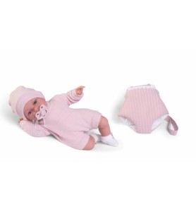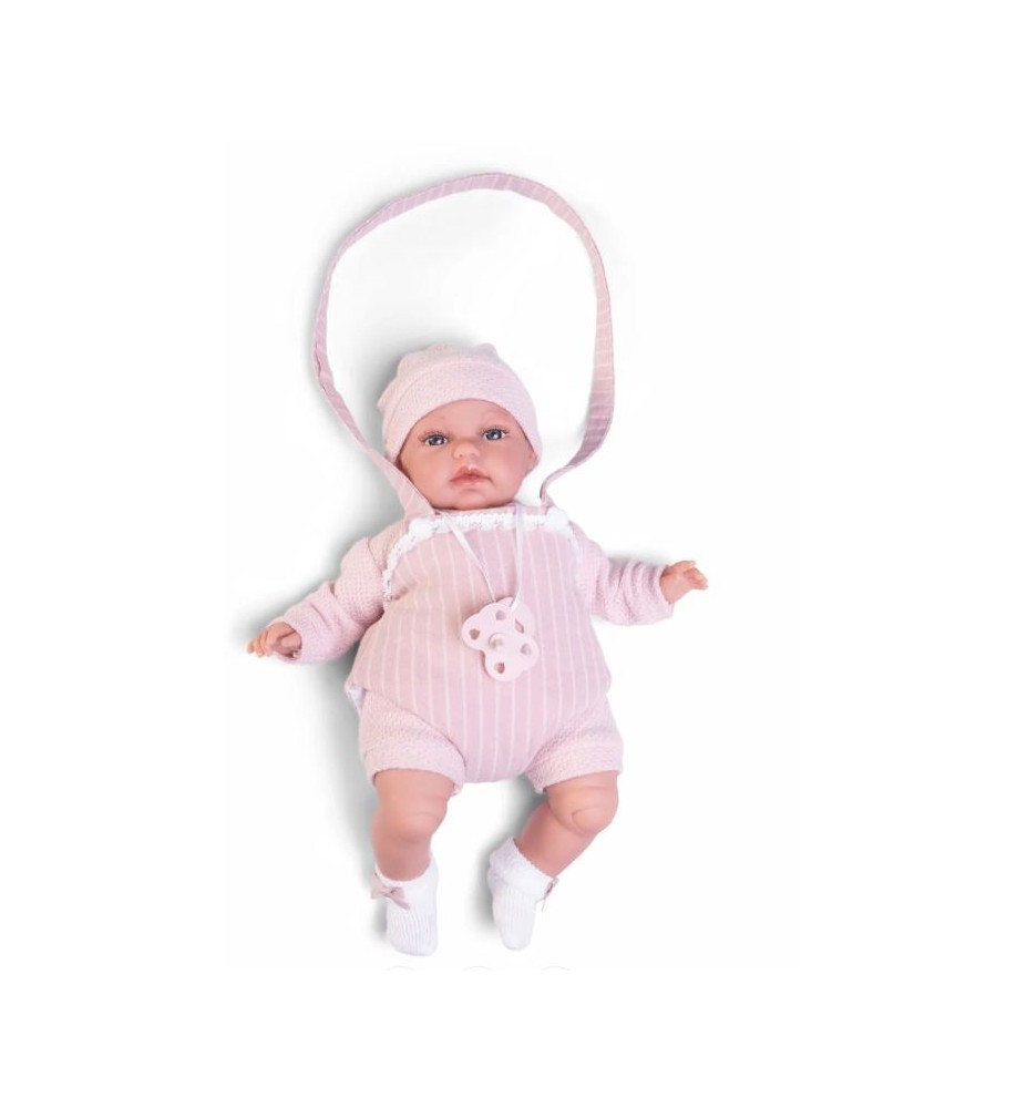 Equipado para cualquier aventura, Baby Toneta se presenta con un práctico bolso portabebé, asegurando que los niños puedan llevarlo consigo, ya sea en un día tranquilo en casa o durante una salida llena de exploraciones al parque. Vestido adecuadamente para cualquier ocasión con un gorro y calcetines a juego, este muñeco está siempre preparado para comenzar el día. El chupete unido por una cinta es un detalle imprescindible para esos momentos en los que Baby Toneta necesita ser calmado y reconfortado.