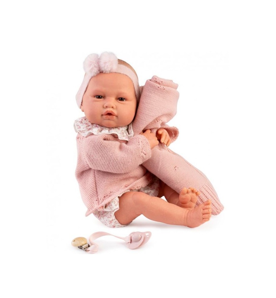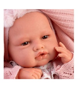 Reborn Baby Love, como un bebe de verdad Reborn Baby Love es una muñeca hiperrealista de 50 cm, con cuerpo blandito y un tacto especial que la hace única. Su piel sonrosada, venitas delicadas y manicura han sido pintadas a mano, recreando con detalle la belleza de un auténtico bebé. Además, incluye su certificado de autenticidad y un libro de familia, convirtiéndola en una muñeca única y especial. Viste con un conjunto de punto en color rosa y culotte y babero con un estampado de flores.