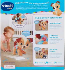 Tu peque va a alucinar con este adorable perrito interactivo. El Cachorrito Pasitos de VTech Baby es blandito, simpático y ¡cobra vida cuando lo tocas! Anda, ladra, canta y hasta cuenta cositas mientras acompaña a los peques en sus primeros pasos. ¡Es como tener una mascota que también enseña!