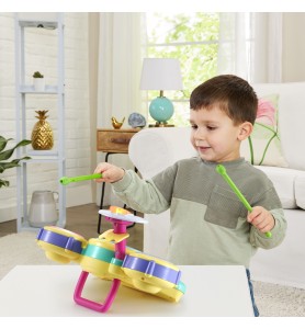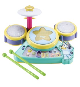 ¡Juega, canta y toca la batería con Bluey y Bingo! Completa batería interactiva de Bluey con 3 alegres juegos y múltiples botones. Con dos baquetas incluidas, los niños pueden tocar el timbal, los dos tambores laterales y el bombo central, ¡todos luminosos! Selector de actividades para elegir 3 actividades: Juego libre, ¡Sígueme! y ¡Cantando se aprende a contar!3 botones musicales permiten añadir música de fondo en tres estilos diferentes: pop, sonido electrónico y countryPuede cambiar el tipo de sonido de los tambores: acústico, electrónico, sonidos de animales y divertidísimos efectos sonoros de Bluey y BingoEl botón Tambor añade secuencias musicales de batería sobre la melodía acompañando al niño mientras tocaCon el gran botón Bluey, escuchará frases y sonidos de su personaje favorito y la alegre música de la serieCon la voz original de Bluey y una canción interpretada por Bluey y Bingo.Portabaquetas para llevarlas siempre con la batería.Asa para facilitar el transporte de la batería.Botón silenciador para detener la música de fondo.Control de volumen y desconexión automática.