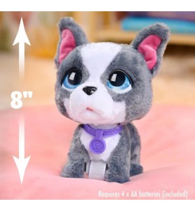 Camina y habla: Engancha el collar de este dulce cachorro a la correa y empuja suavemente al bulldog francés por la casa para ver su paseo saltarín, que se completa con el bamboleo de la cabeza y adorables efectos de sonido de cachorro.