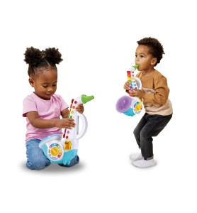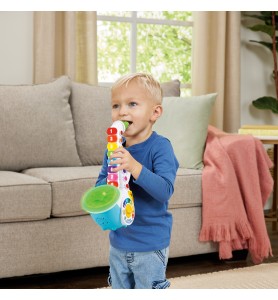 Saxofón de colores con una gran variedad de sonidos. 8 botones para reproducir notas musicales o aprender los colores y los números. Rueda para elegir el sonidos de diferentes instrumentos. Llamativo saxofón de colores con una gran variedad de sonidos- Rueda para elegir el sonidos de diferentes instrumentos- 8 botones para reproducir notas musicales o aprender los colores y los números- Canciones grabadas en las que podrá seguir el ritmo- Boquilla extraíble fácil de limpiar. Al soplar escucha divertidos sonidos- 2 tarjetas a doble cara con canciones para aprender a tocar